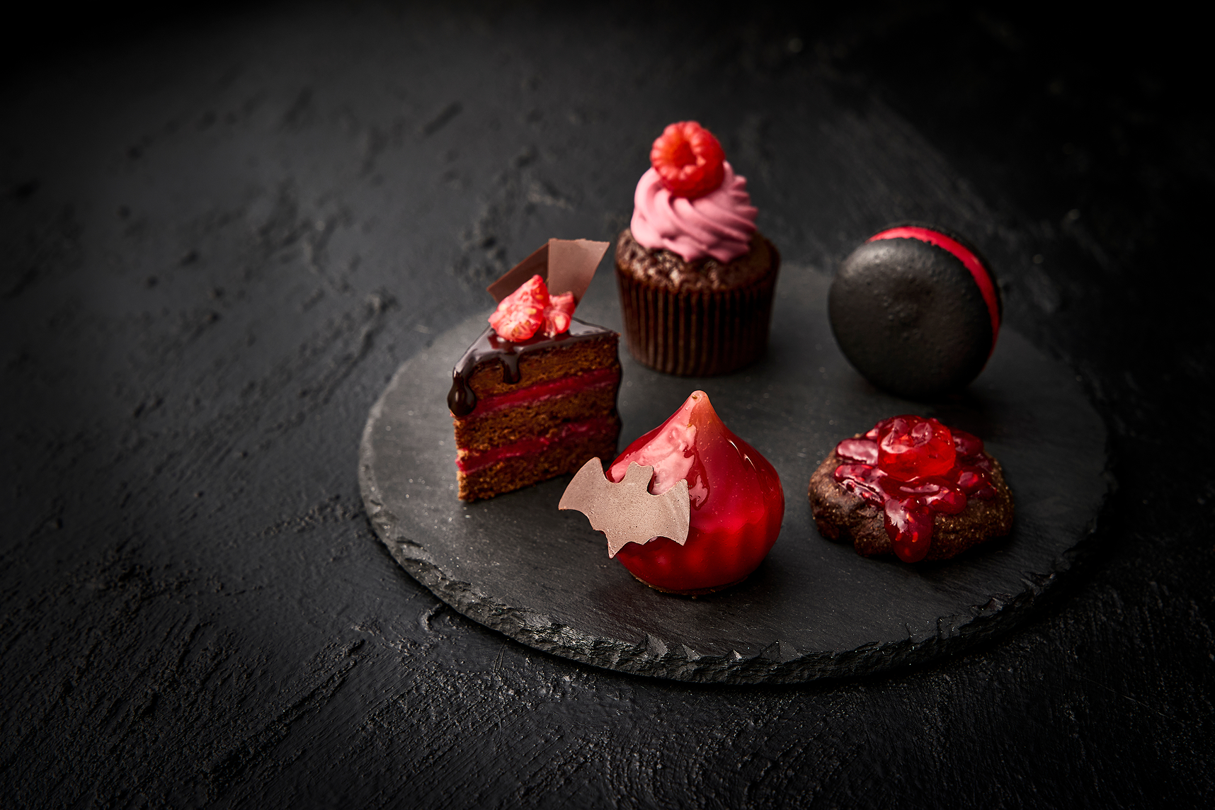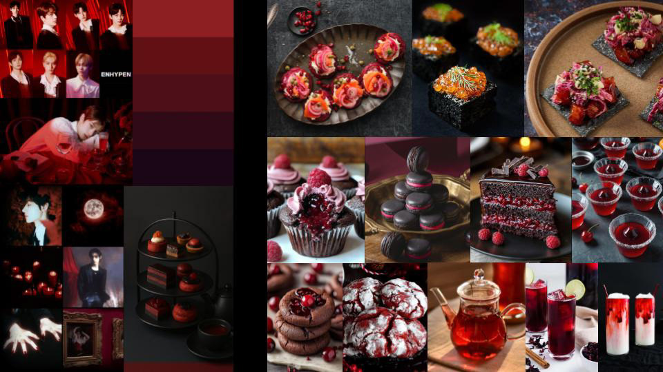 Deep reds, berry tones, and textured blacks shaped the visual palette,